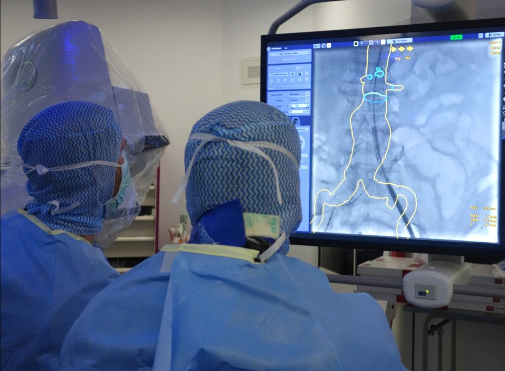 Nous travaillons en collaboration avec le Laboratoire d’Exploration Cardio-Vasculaire (LECV) au sous-sol du bâtiment 5, qui réalise la plupart des examens pré et post-opératoires pour nos patients. Certains patients nécessitent également la réalisation des examens radiologiques (artériographie, angio-TDM, angio-IRM, Rx…) qui sont assurés dans le sous-sol du bâtiment 16 par nos confrères radiologues.